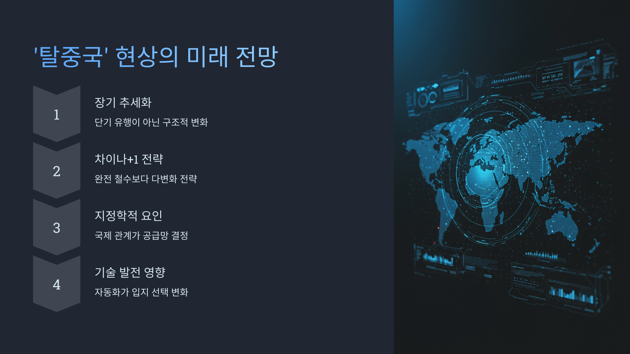 - ⛓️ 공급망 안정성 확보: 팬데믹 때 경험했듯, 한 곳에 생산이 집중되면 문제가 생겼을 때 전체 공급망이 마비될 수 있어요. 위험을 분산시키기 위해 여러 나라에 생산 거점을 두려는 '공급망 다변화' 전략이 중요해졌습니다.