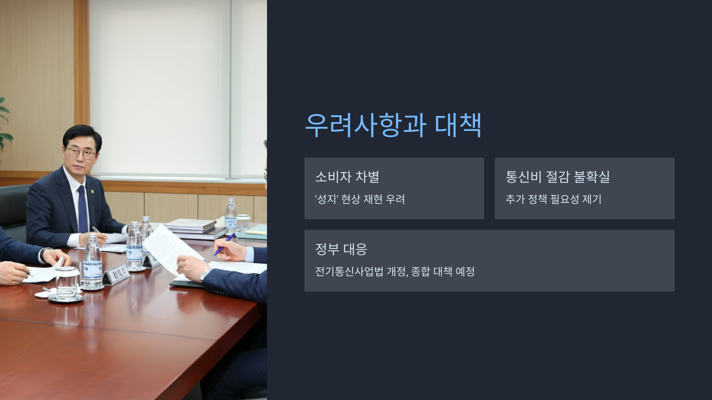 정부는 이용자 편익을 보장하는 조항들을 전기통신사업법으로 이관하여 유지할 계획입니다[10]. 또한, 2025년 1월에는 통신료 관련 종합 대책을 발표할 예정이어서, 이를 통해 소비자 보호와 시장 안정화를 위한 추가적인 방안이 마련될 것으로 보입니다