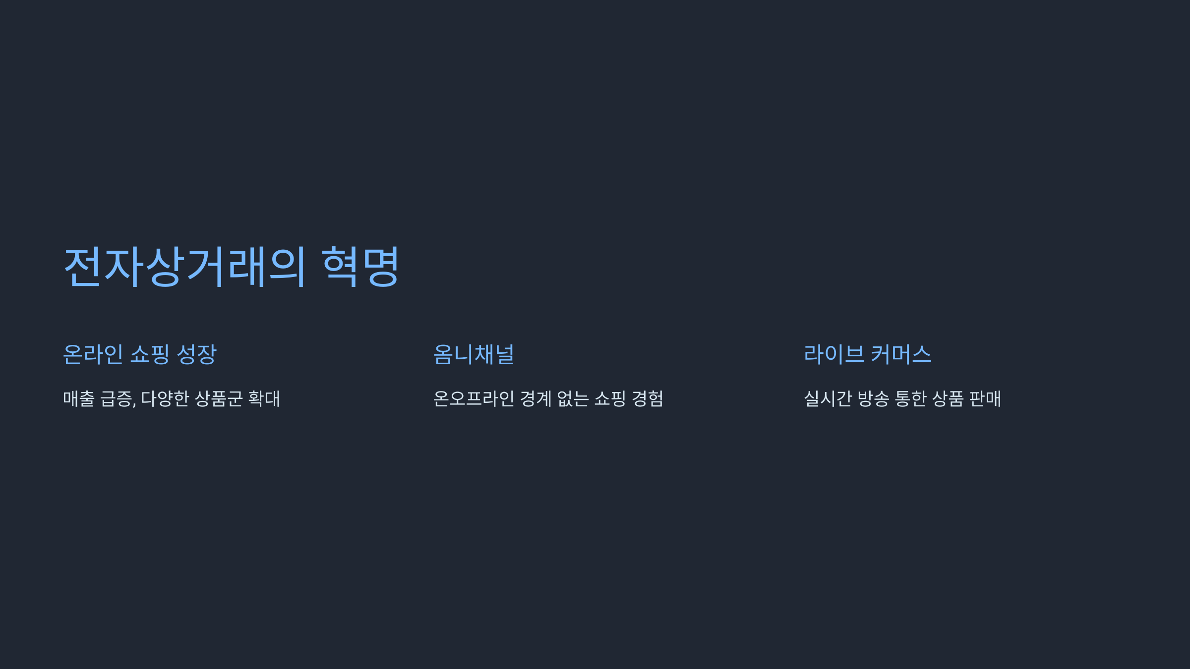 - 라이브 커머스: 실시간 방송을 통한 상품 판매