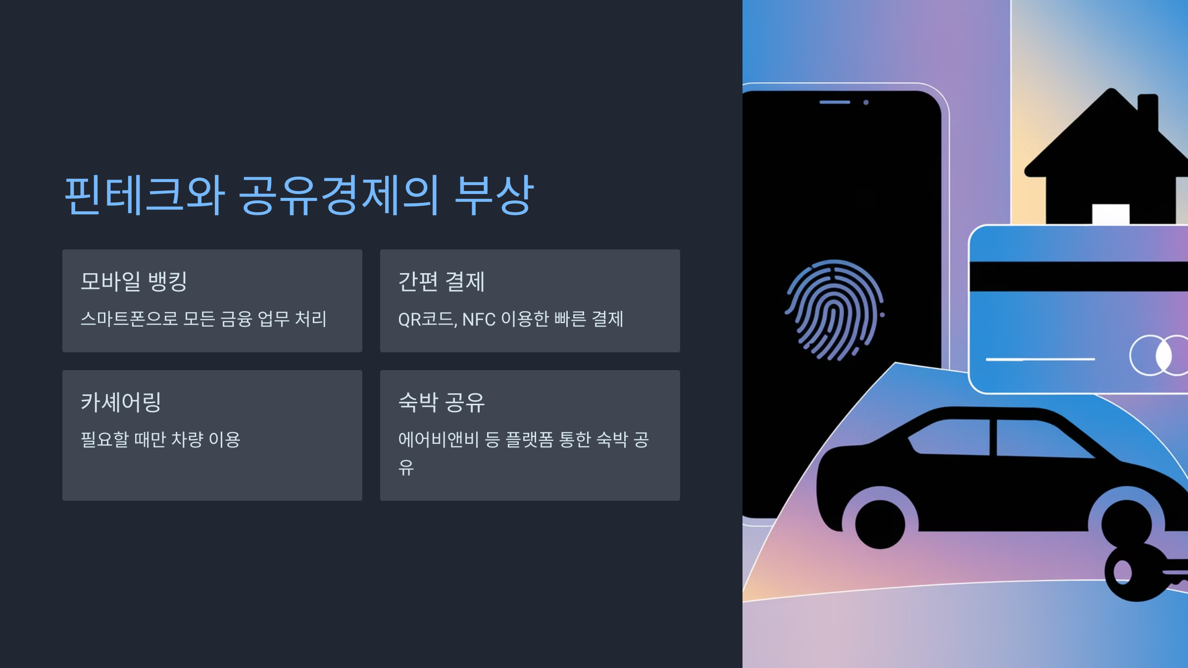- 모바일 중심: 스마트폰으로 모든 것을 해결하려는 트렌드