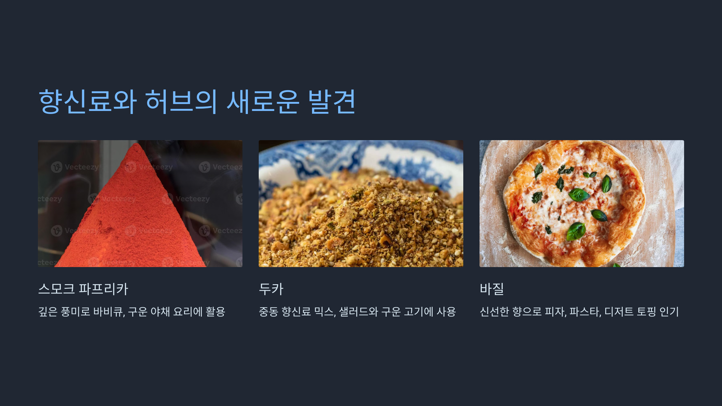 여러분도 이번 주말, 평소에 시도해보지 않았던 새로운 토핑으로 요리를 해보는 건 어떨까요? 아보카도 토스트, 김치 피자, 혹은 두카를 뿌린 샐러드 - 어떤 것이든 좋아요. 새로운 맛의 세계가 여러분을 기다리고 있답니다!