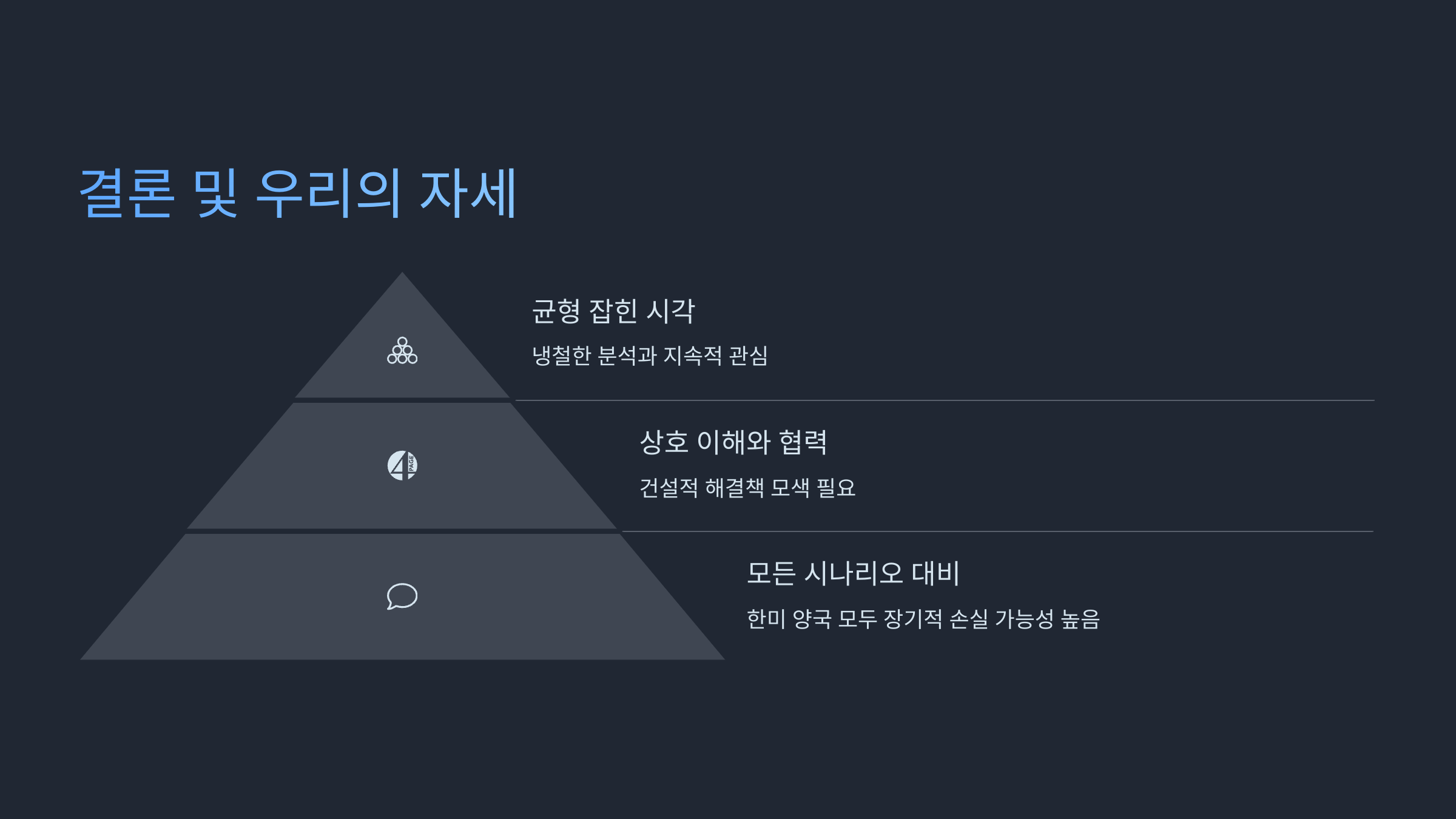 - 한미 동맹 관계: 경제적 갈등은 오랜 기간 동안 지속되어 온 한미 동맹 관계에 부정적인 영향을 미칠 수 있습니다. 안보 협력 측면에서도 신뢰 관계 약화로 이어질 가능성을 배제할 수 없습니다.