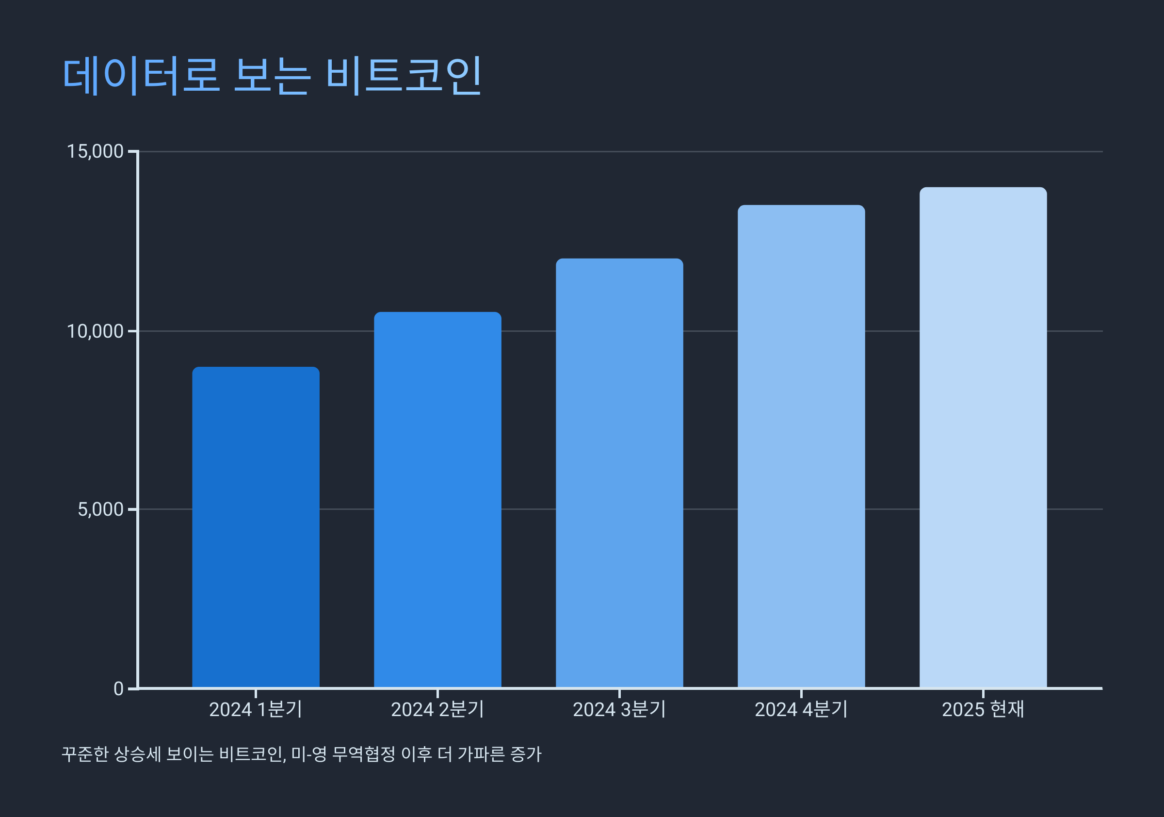 - 무역협정을 통한 교역 활성화는 장기적으로 경제 성장에 긍정적인 영향을 미칠 수 있으며, 이는 전반적인 시장 유동성 확대로 이어질 수 있다는 기대감을 줍니다. 이러한 기대감이 선반영되어 비트코인 가격 상승을 이끌었다는 분석입니다.