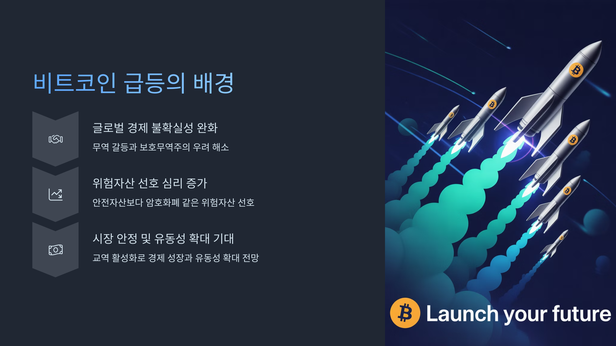 - 기술적 발전 및 생태계 확장: 비트코인 네트워크 자체의 기술적 개선(예: 레이어2 솔루션)과 다양한 서비스의 등장은 비트코인의 사용성과 가치를 높이는 데 기여하고 있습니다.