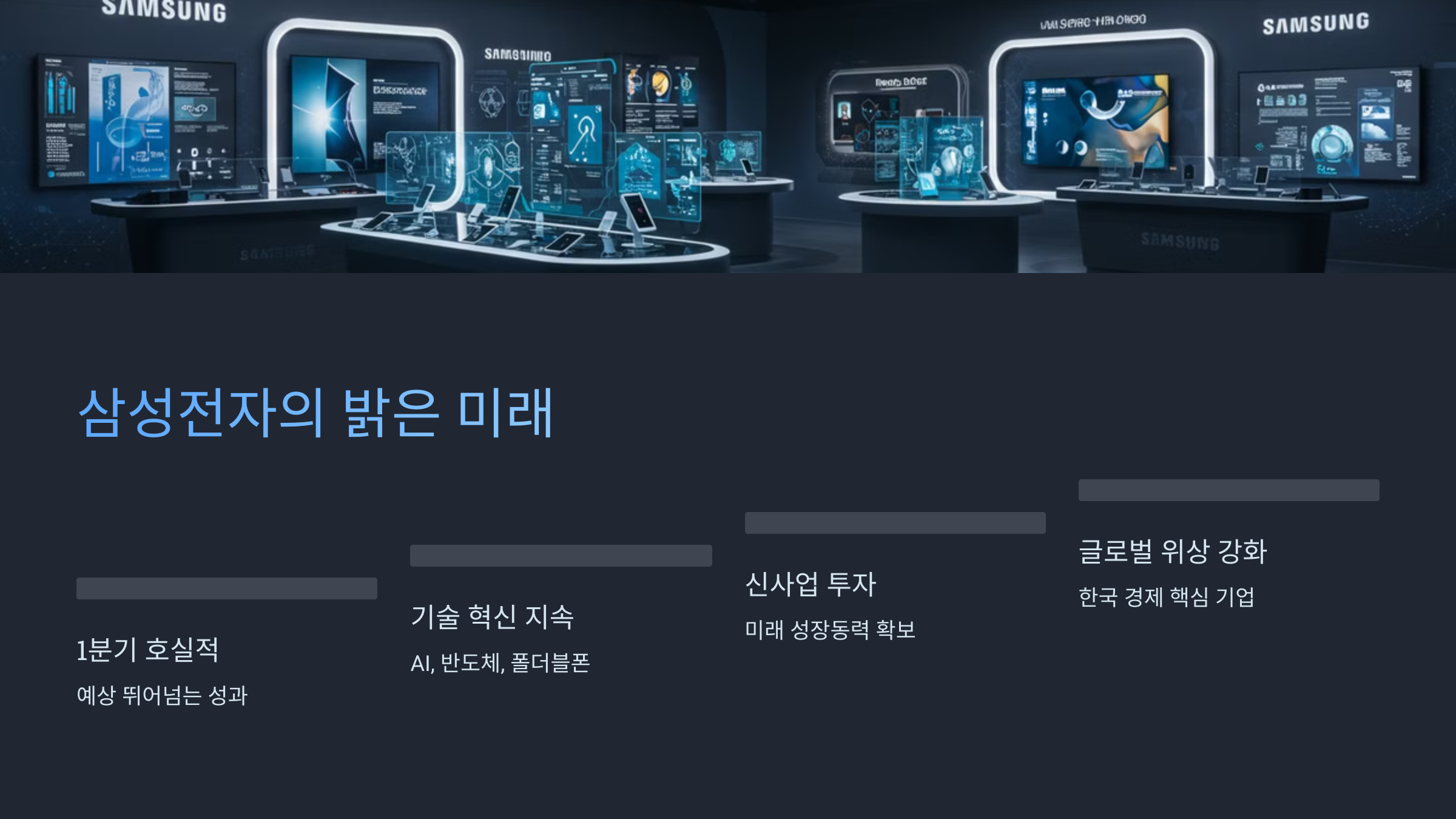 반도체, 스마트폰뿐만 아니라 인공지능, 헬스케어 등 미래 성장 동력 확보를 위한 투자를 지속하고 있어 장기적인 성장 가능성은 긍정적으로 평가됩니다.