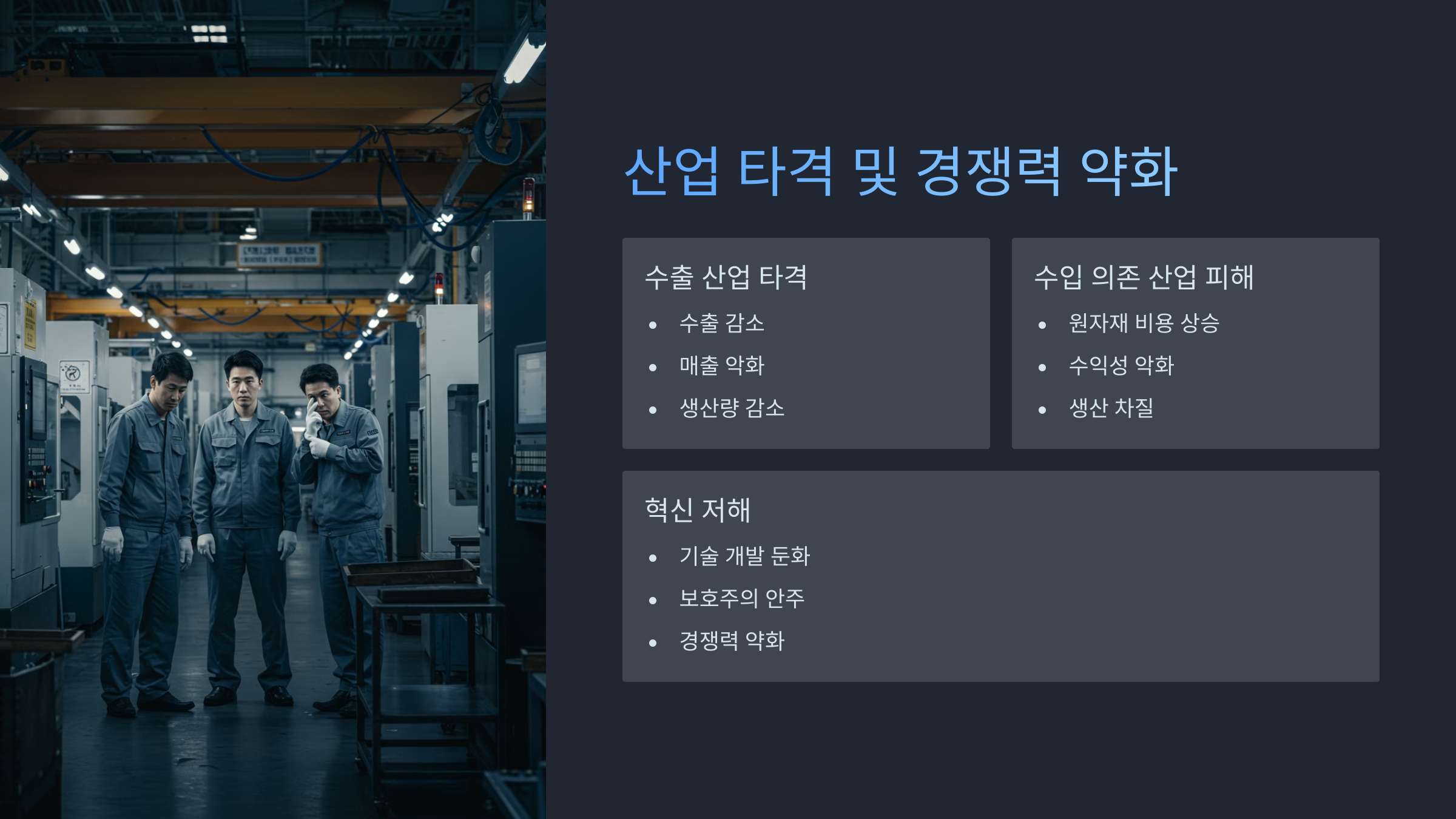 - 특정 산업 타격 및 경쟁력 약화 🏭