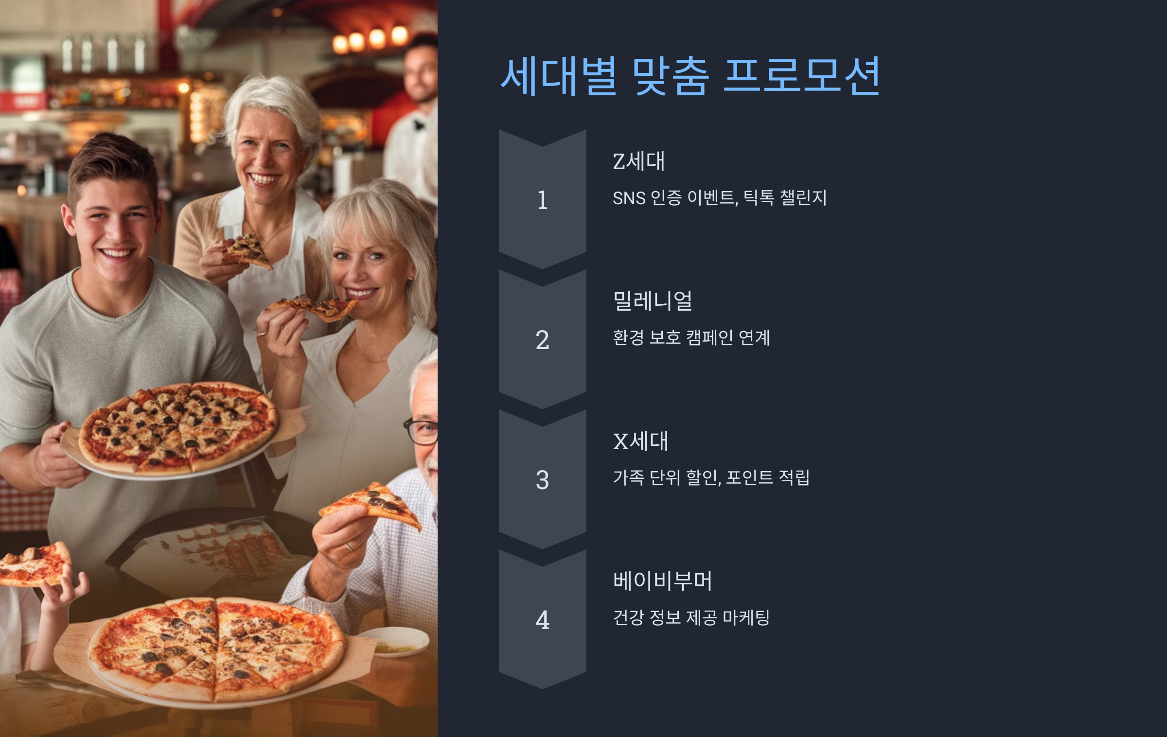피자는 정말 매력적인 음식이에요. 세대를 아우르는 사랑을 받으면서도, 각 세대의 특성을 반영할 수 있는 유연함이 있죠. 이런 세대별 선호도를 이해하고 마케팅에 활용한다면, 더 많은 고객의 마음을 사로잡을 수 있을 거예요.