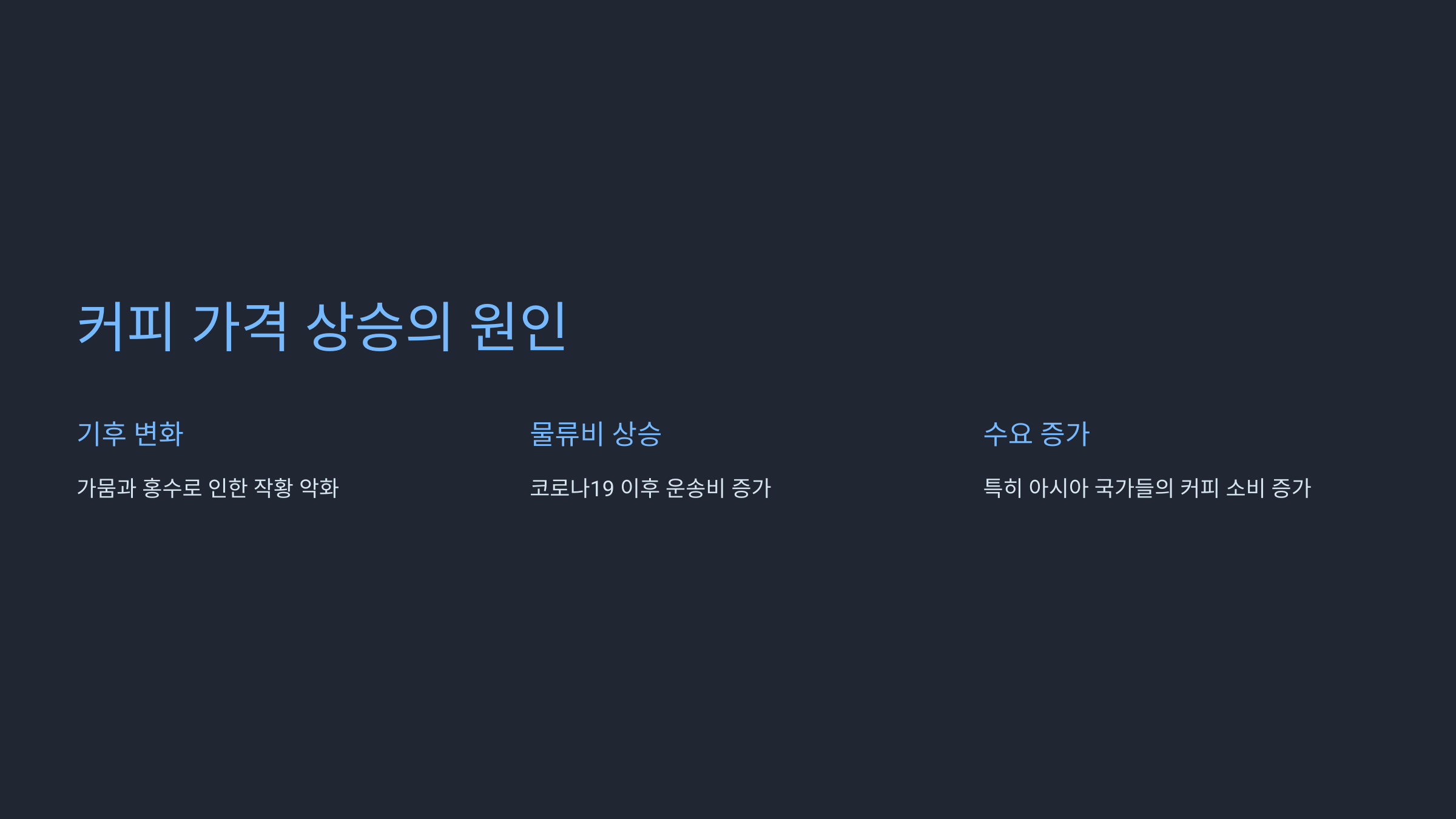 커피 원두 가격 상승의 주요 원인은 크게 세 가지입니다: