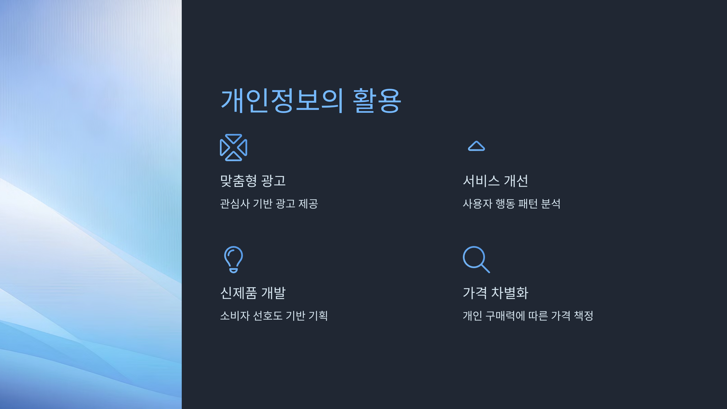 - 맞춤형 광고: 우리의 검색 기록, 구매 이력을 분석해 관심사에 맞는 광고를 제공