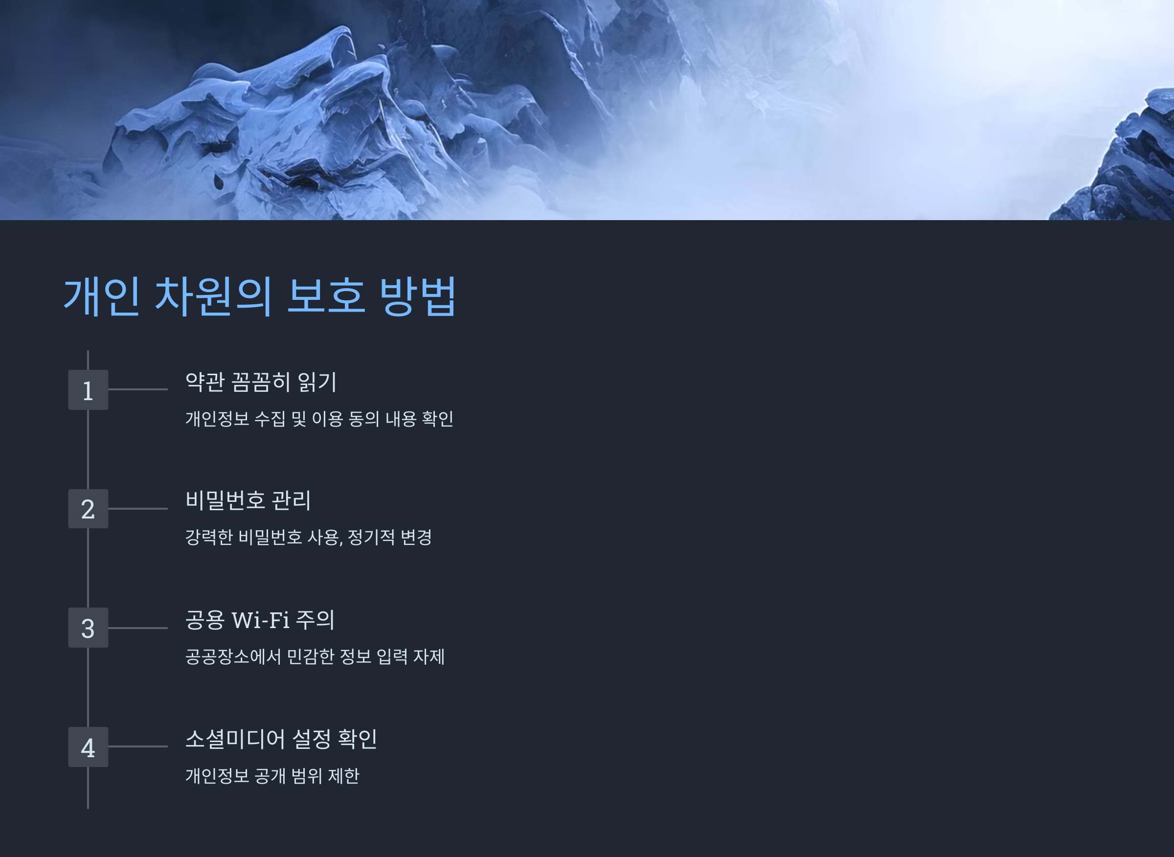 - 공용 Wi-Fi 주의: 공공장소에서 민감한 정보 입력 자제