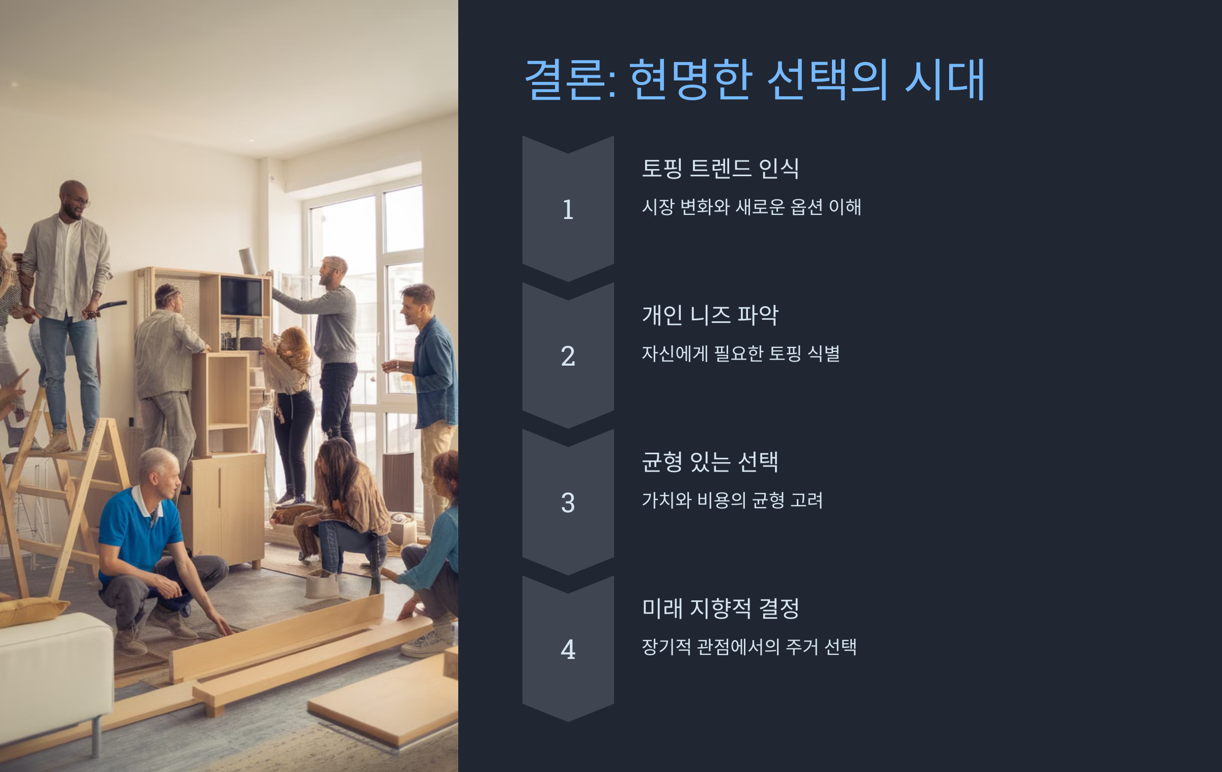 - 공유경제와의 결합: 카셰어링, 공구 대여 등 공유 서비스가 아파트 토핑의 한 축을 담당하게 될 것입니다.