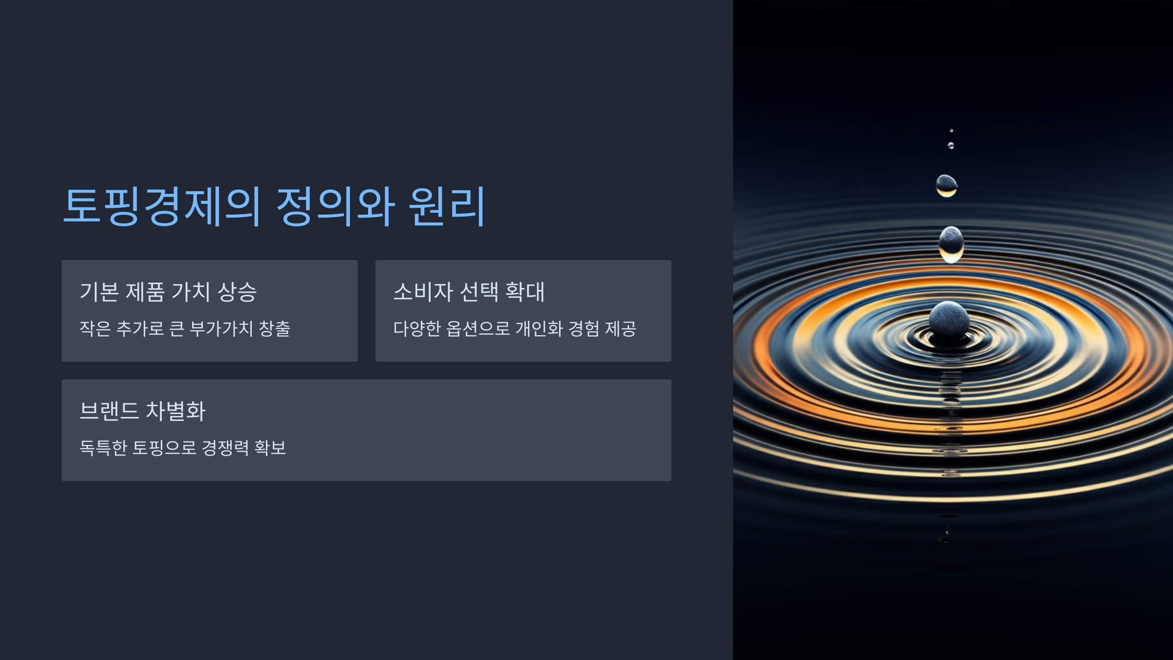 제가 처음 토핑경제의 개념을 접했을 때, 정말 눈이 번쩍 떠졌어요. "아, 이거구나!" 하는 순간이었죠. 우리 주변에 이미 많은 토핑경제의 사례가 있었다는 걸 깨달았거든요.