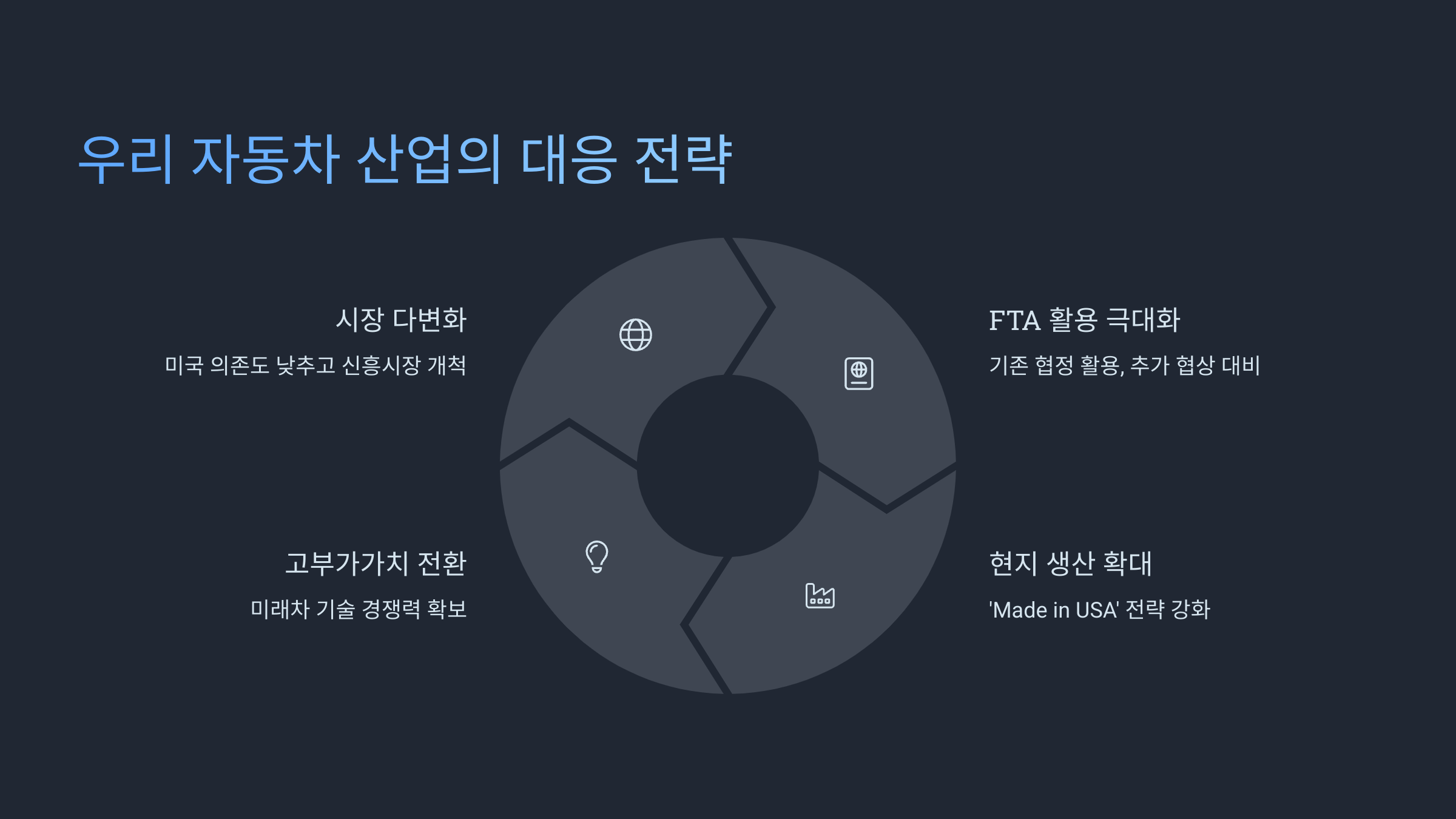 우리나라 자동차 산업은 다양한 대응 전략을 모색하고 실행해야 합니다.
