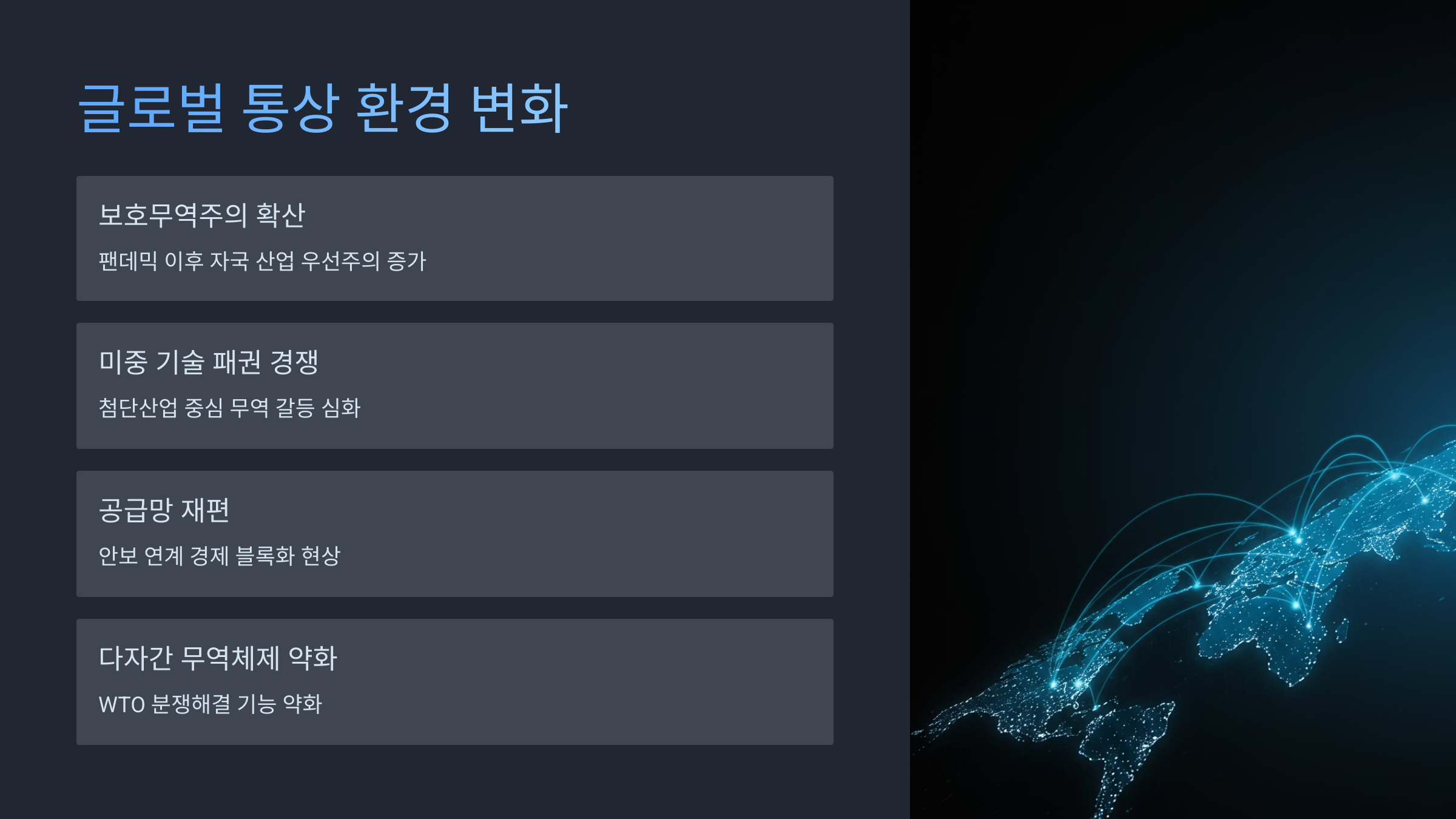 또는 글로벌 통상 환경 변화에 대한 의견이 있다면