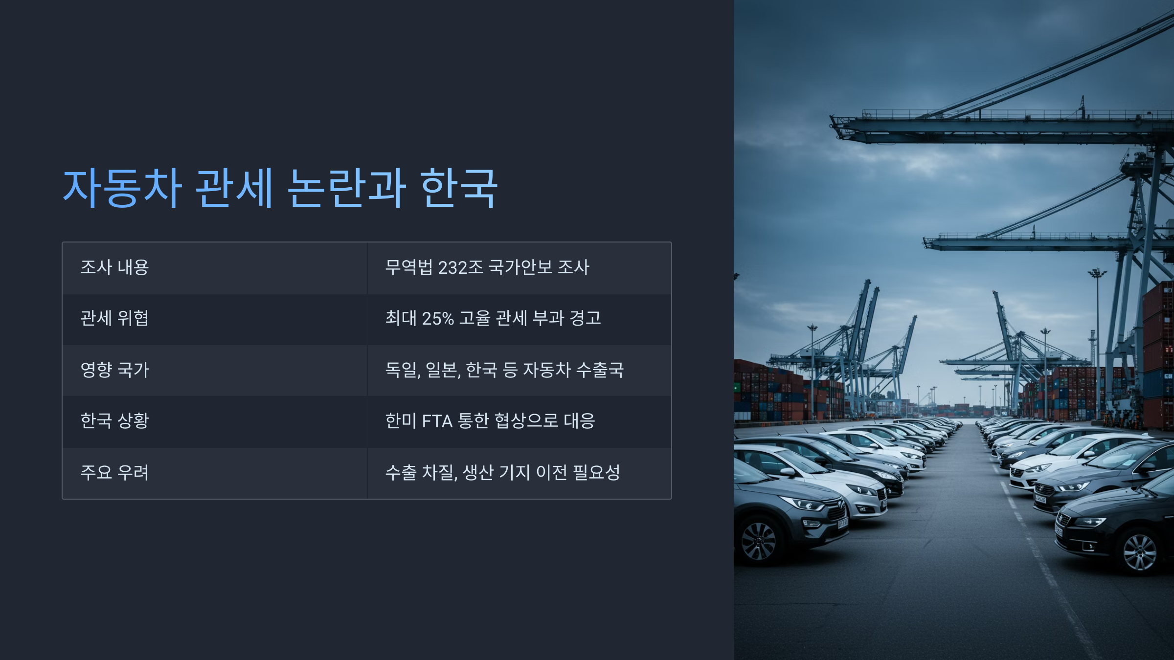 이는 특히 독일, 일본 등 대미 자동차 수출 비중이 높은 국가들에게 큰 위협이었습니다.