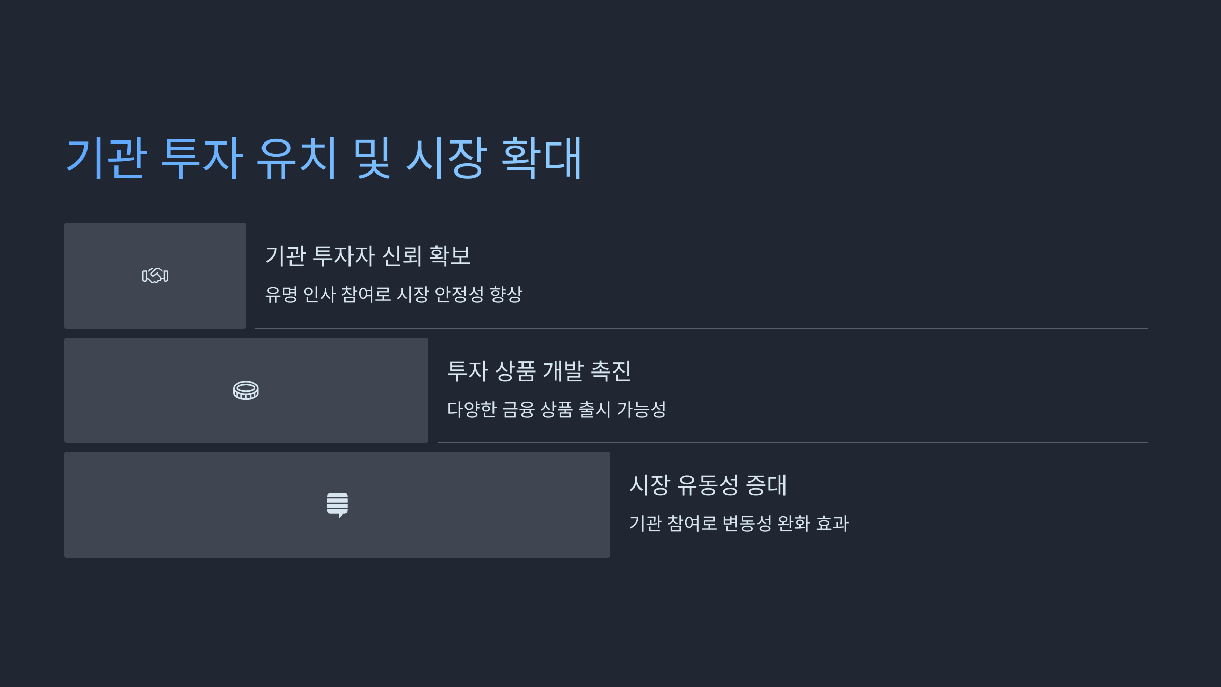 - 기관 투자 유치 및 시장 확대 가능성 🏦
