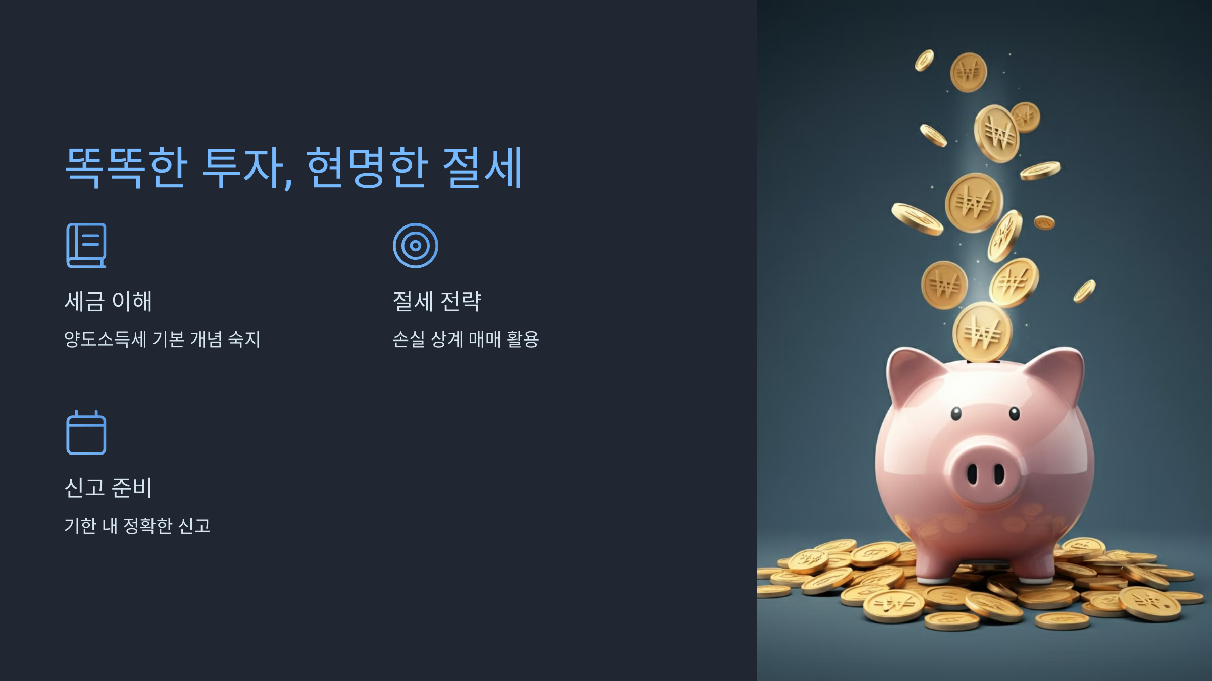 "마치 장기와 단기 수익을 맞바꾸는 것처럼, 수익과 손실을 잘 조절하면 세금도 줄일 수 있어요. 똑똑한 투자자가 되는 길이죠!"