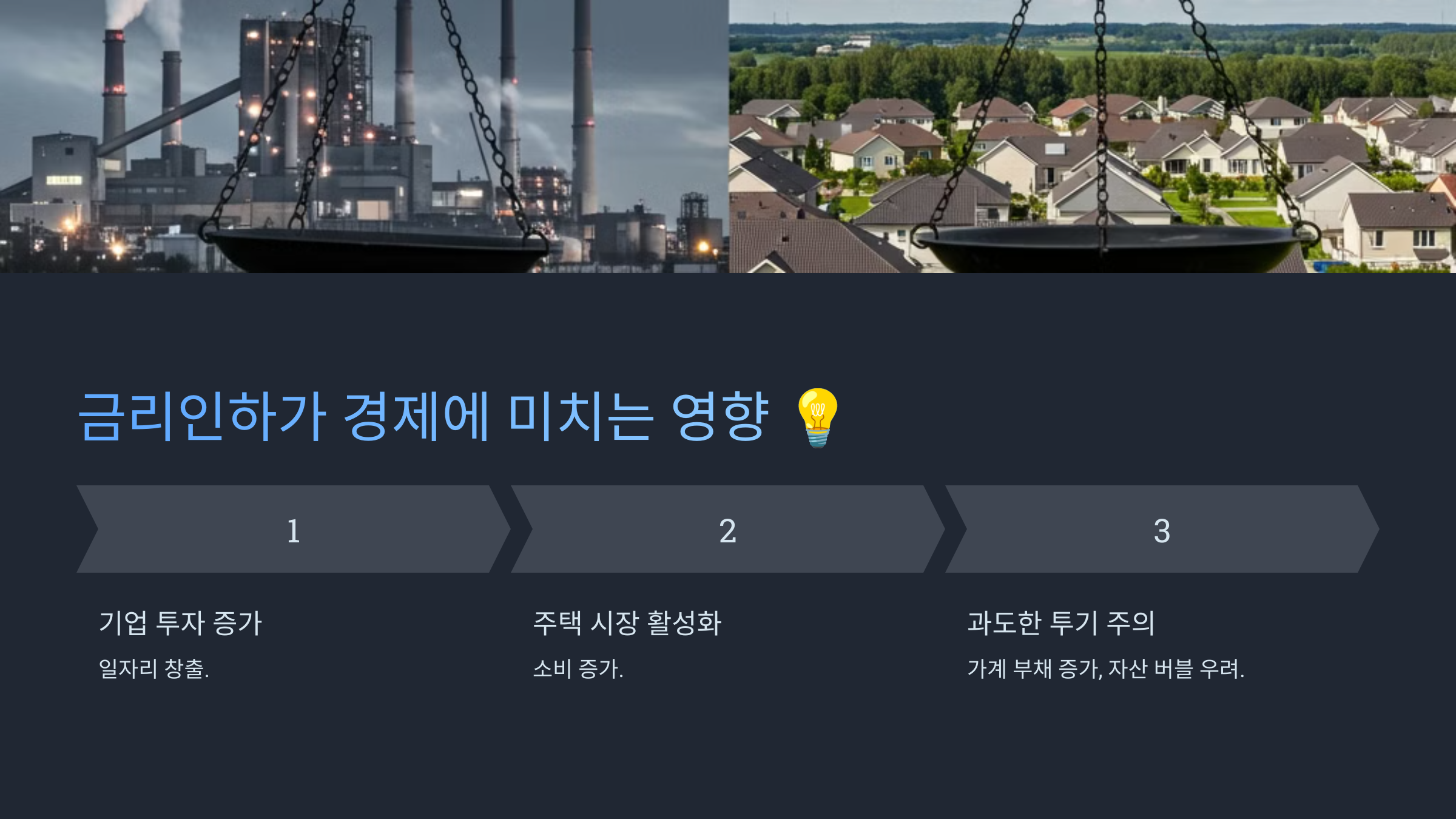 금리인하는 양날의 검과 같습니다. 긍정적인 효과도 있지만, 주의해야 할 점도 있죠.