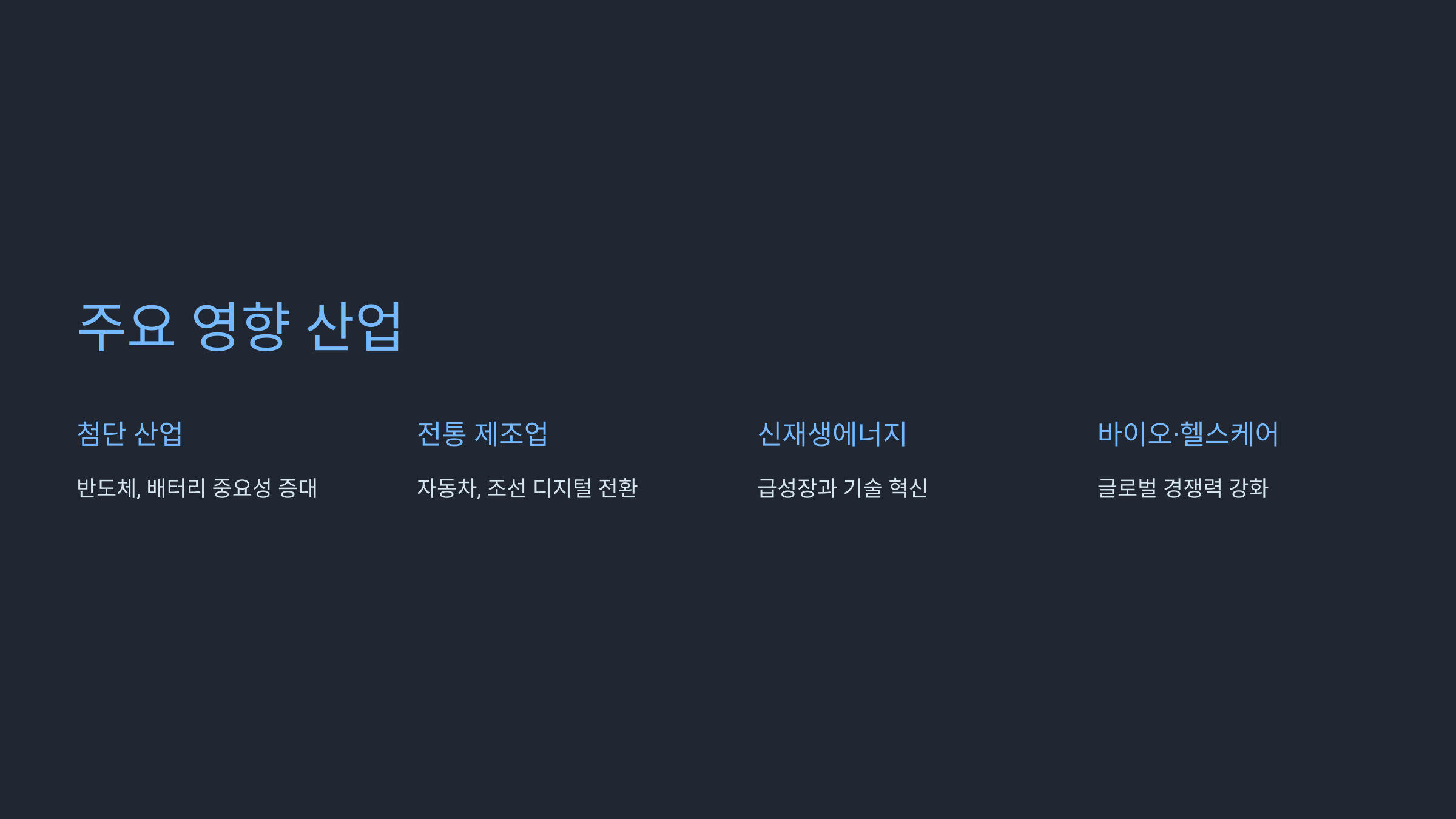 - 반도체·배터리 등 첨단 산업의 전략적 중요성 증대