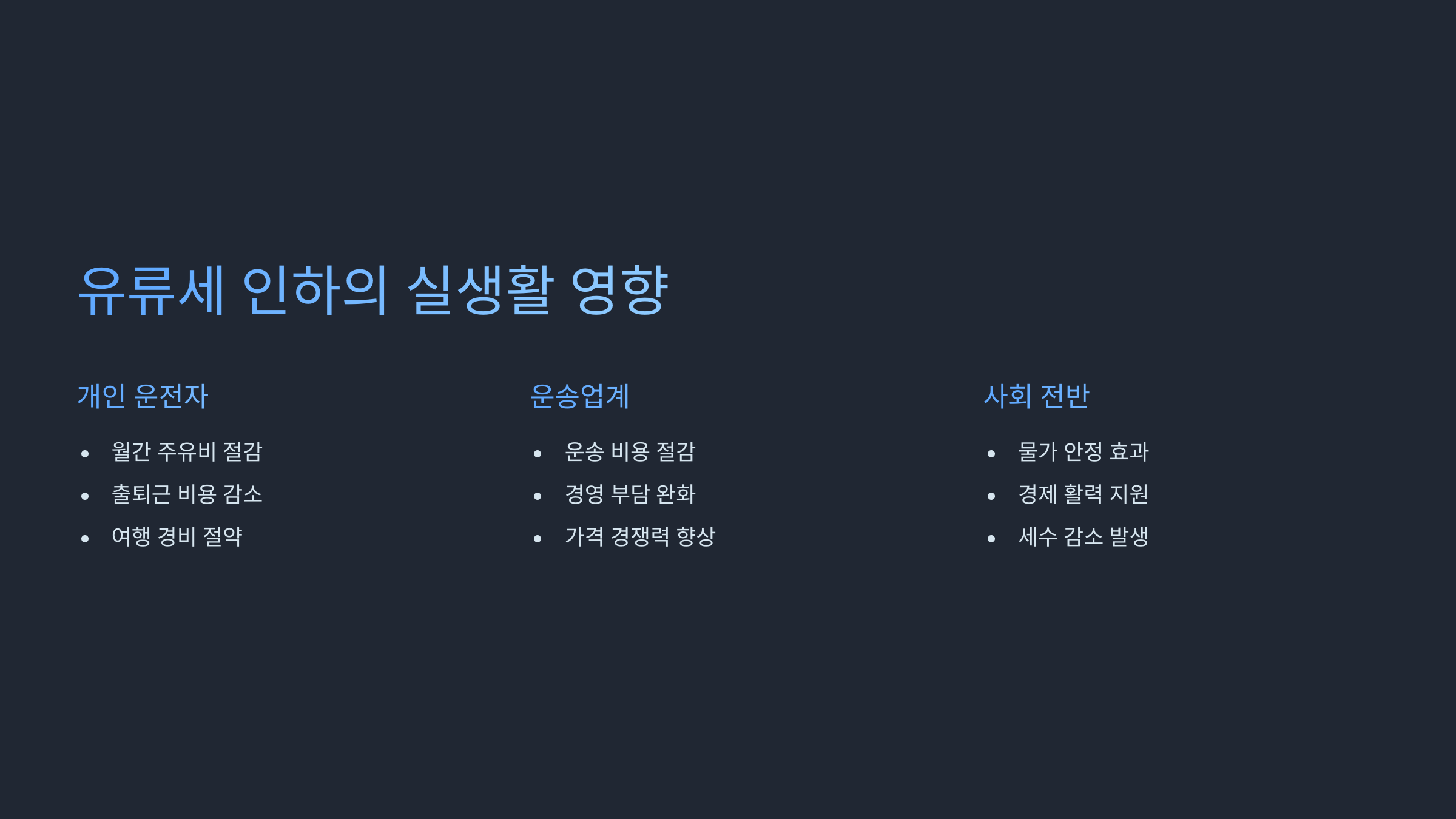유류세 인하 조치는 우리 실생활에 꽤 직접적인 영향을 줍니다.
