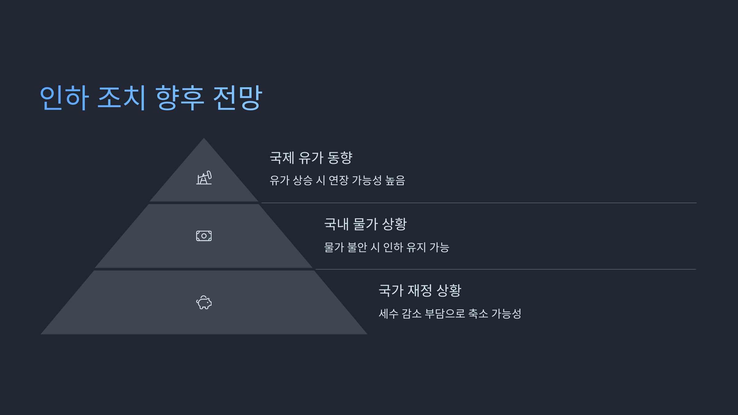 반대로 유가가 안정세를 찾는다면 인하 폭을 줄이거나 종료할 수 있겠죠.