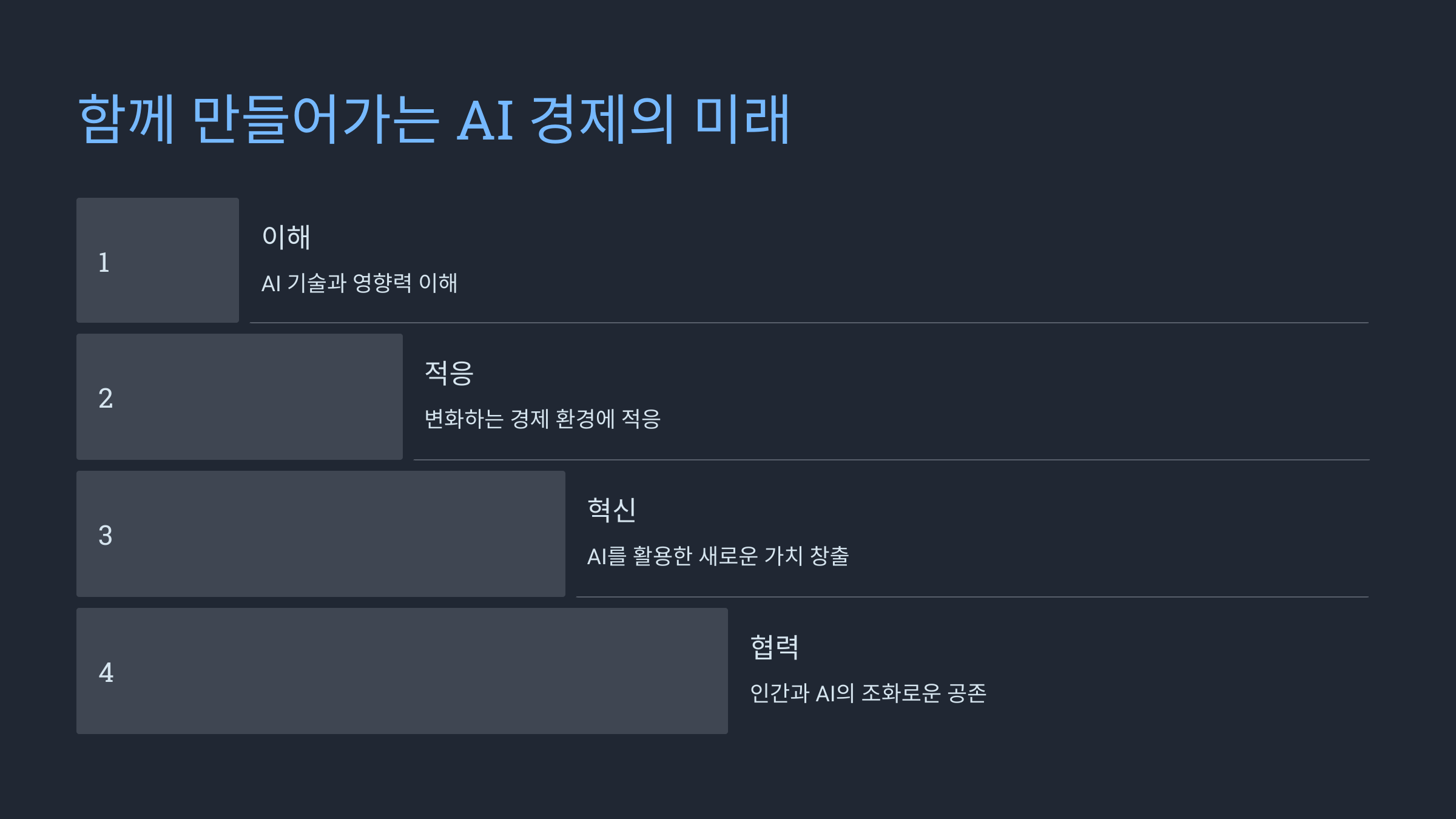AI 경제 혁신의 물결 속에서 우리 모두가 승자가 될 수 있도록, 지금부터 차근차근 준비해 나가는 것이 중요합니다. 여러분도 AI의 발전을 두려워하기보다는, 이를 기회로 삼아 새로운 도전을 시작해보는 건 어떨까요? 함께 AI가 만들어갈 새로운 경제의 지평을 향해 나아가봅시다!