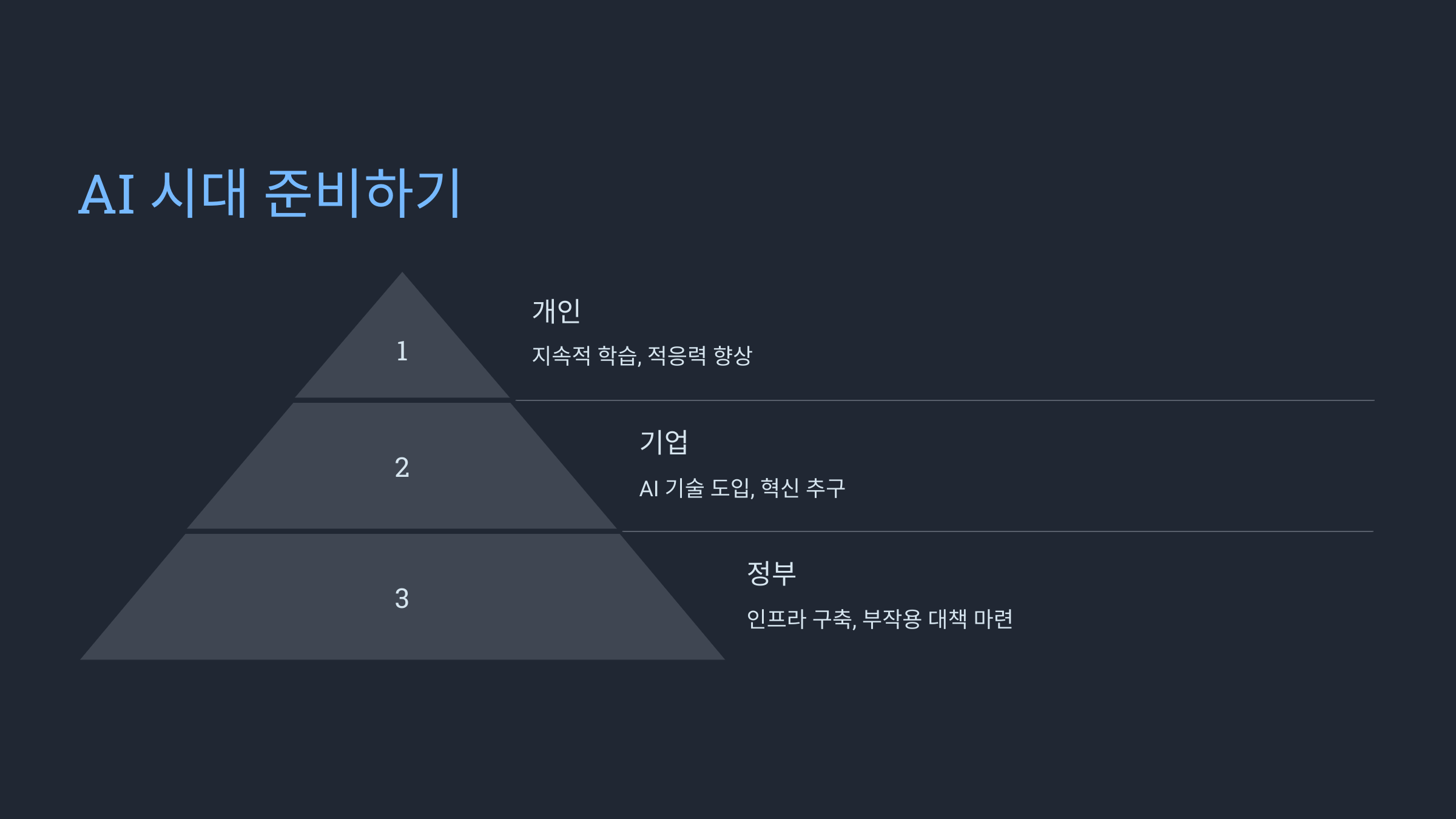 반복적이고 예측 가능한 업무는 AI가 대체하고 있습니다. 반면, AI 개발자, 데이터 과학자, AI 윤리 전문가 등 새로운 직종이 떠오르고 있어요. - 평생 학습의 중요성 증대