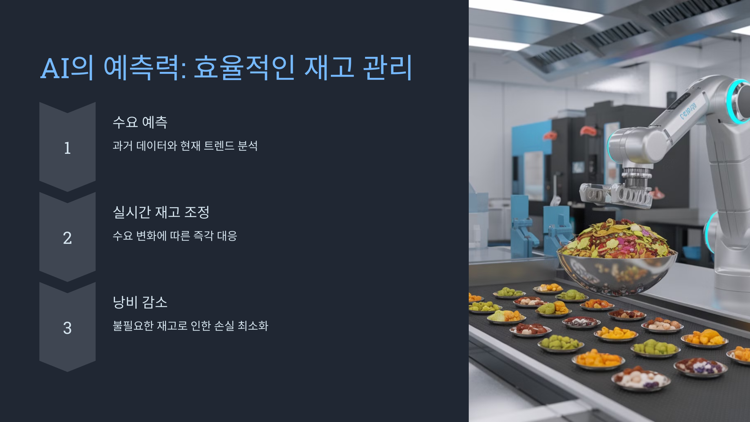 한 글로벌 패스트푸드 체인은 AI를 활용해 매장별 토핑 수요를 정확히 예측함으로써 식품 폐기물을 30% 가까이 줄였다고 합니다. 놀랍지 않나요?