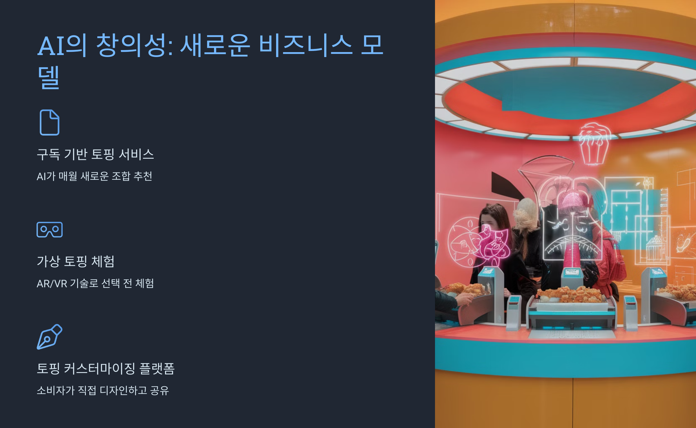 AI는 기존에 없던 새로운 형태의 토핑 비즈니스 모델을 제시합니다.