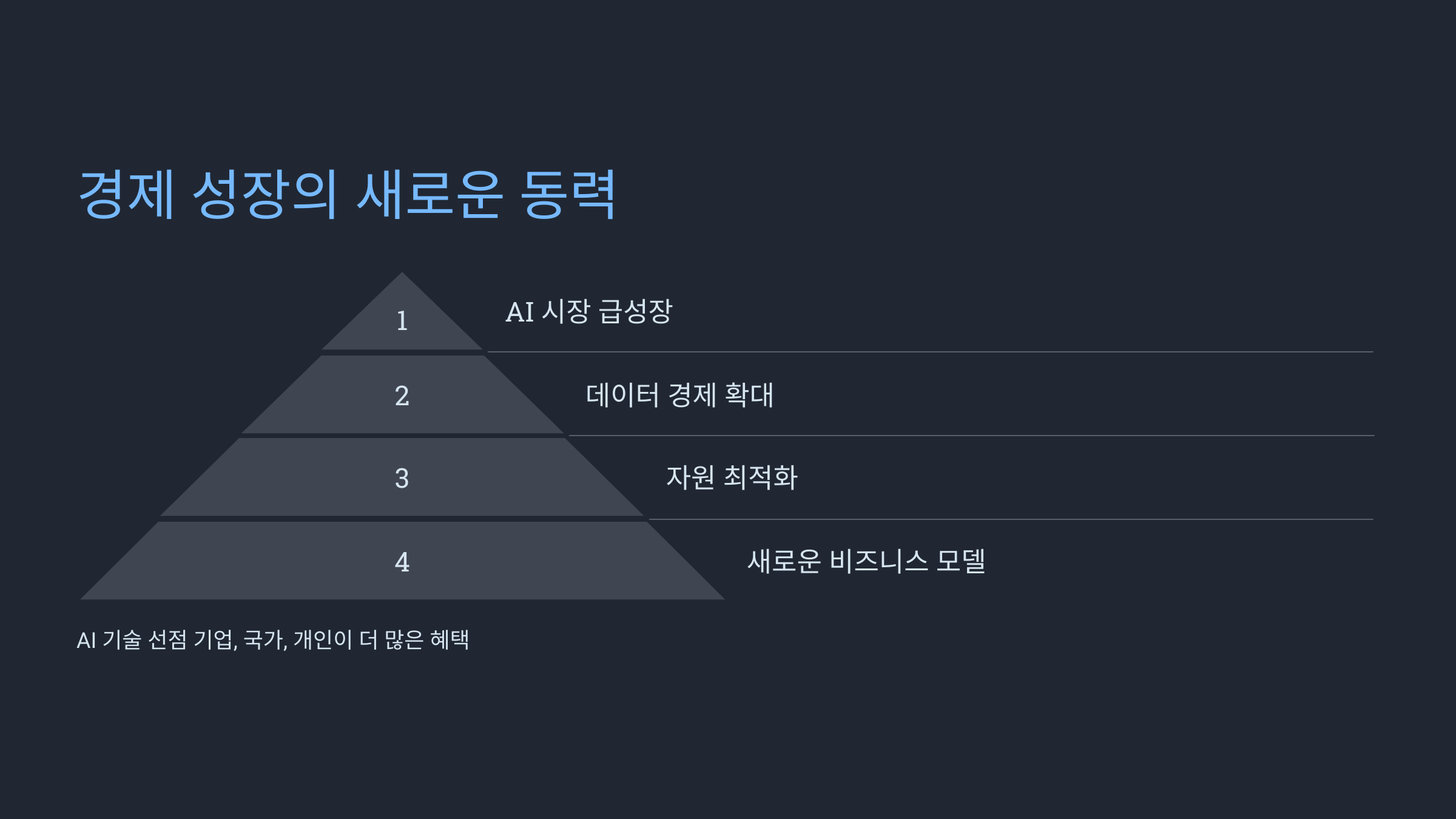 하지만 이러한 성장이 모든 이에게 균등하게 혜택을 줄 것인지는 의문입니다. AI 기술을 선점한 기업과 국가, 그리고 AI 활용 능력을 갖춘 개인들이 더 많은 혜택을 받게 될 가능성이 높습니다.