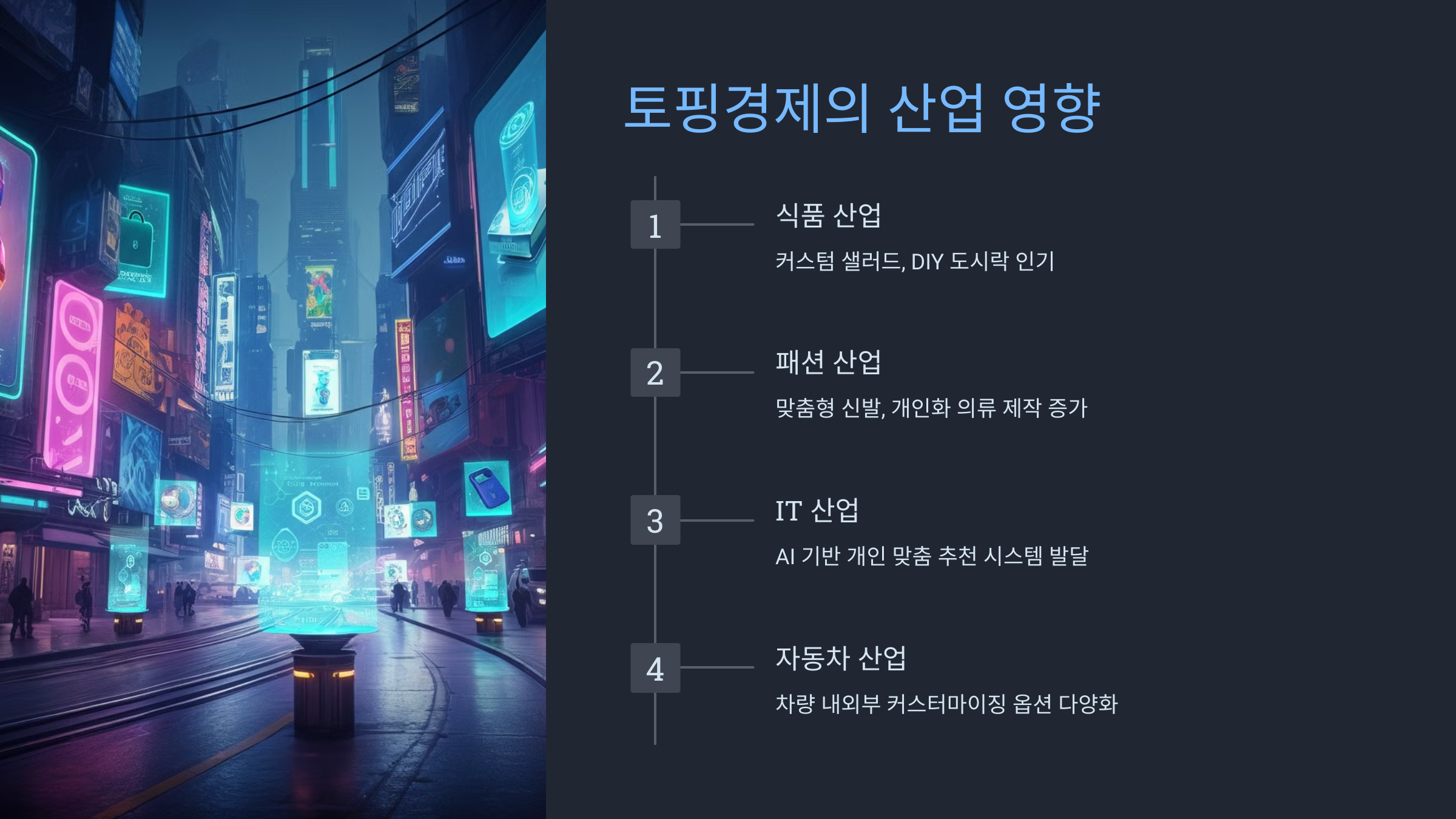 토핑경제는 다양한 산업 분야에 변화를 가져오고 있습니다: