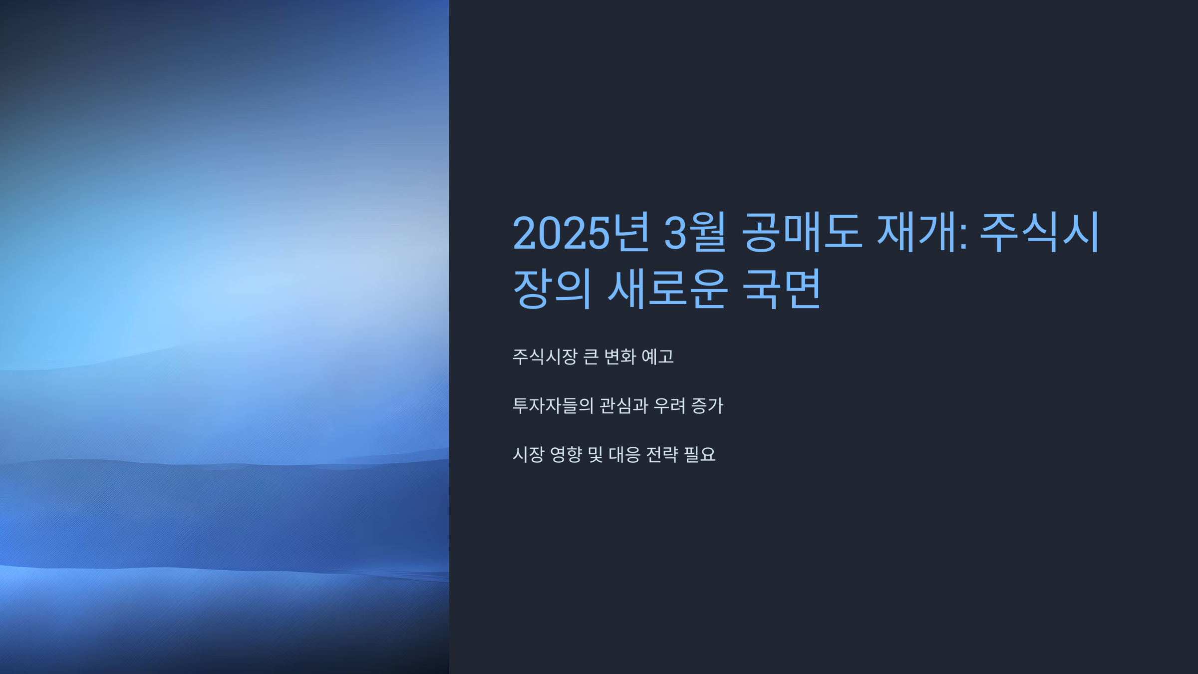 2025년 3월 공매도 재개: 주식시장의 새로운 국면 📈🔄여러분, 주식 투자하고 계신가요? 2025년 3월, 우리 주식시장에 큰 변화가 찾아옵니다. 바로 공매도 재개인데요. 이 소식을 들으면 어떤 생각이 드시나요? 걱정되시는 분들도 계실 것 같습니다. 오늘은 공매도 재개가 우리 주식시장에 어떤 영향을 미칠지 자세히 살펴보겠습니다.공매도란 무엇인가? 🤔공매도는 주식을 빌려서 팔고, 나중에 더 싼 가격에 사서 갚는 투자 방식입니다. 쉽게 말해, 주가가 떨어질 것으로 예상될 때 이익을 얻을 수 있는 전략이죠. 하지만 이 제도는 항상 논란의 중심에 있었습니다.공매도 재개가 미치는 영향 🌪️1. 시장 유동성 증가 💧거래량 증가: 공매도 재개로 인해 주식 거래량이 늘어날 것으로 예상됩니다. 이는 시장의 활..